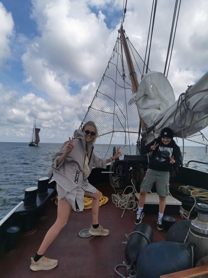 Ein Highlight war das "Trockenlegen", bei dem das Schiff bei Ebbe auf dem Meeresboden zum Liegen kommt. Wir konnten nun mitten auf dem Meer übernachten, weit weg von jedem Hafen. Das bedeutete: keine Nachbarn, keine Ruhezeiten und so viel Gelächter und Musik wie wir wollten. Einige Jugendlichen übernachteten sogar auf Deck und wurden mit einem atemberaubenden Sonnenaufgang belohnt.