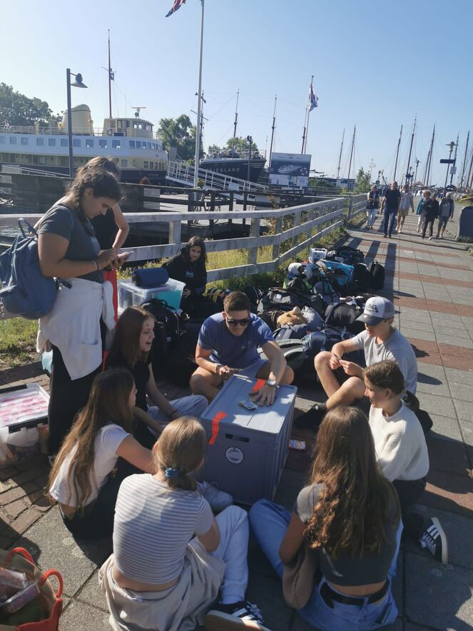 Nach einigen Stunden Fahrt, stieg die Jugendgruppe samt Leitungsteam beim Hafen in Enkhuizen aus. Dort verabschiedeten wir uns vom zweiten Segelboot, das von einem anderen Hafen starten sollte.