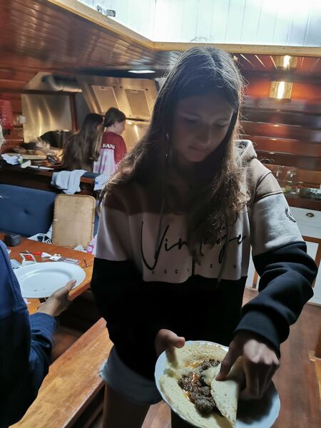 Bevor wir selbst aufs Boot gingen, machte sich ein Teil der Jugendlichen auf den Weg zum Einkaufen, damit wir für die ersten zwei Tage ausreichend Verpflegung an Bord hatten. Danach gingen wir zu unserem Schiff wo wir es uns gemütlich einrichteten und gemeinsam einen Kochplan erstellten.